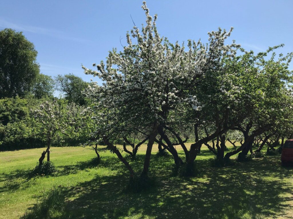 Gomdes main camping area is a beautiful orchard, only few minutes walk to the dining areas and buddha hall.